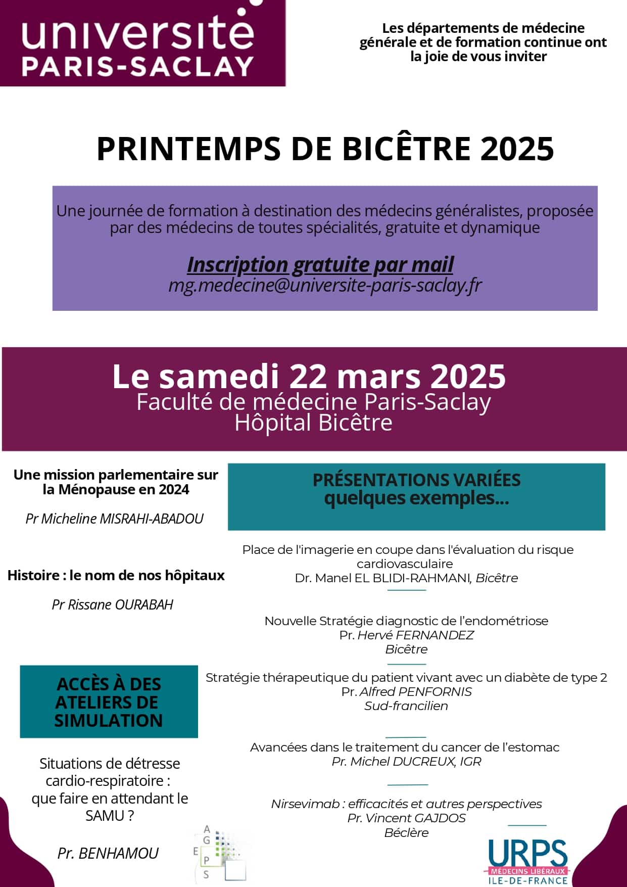 Lieu : Faculté de Médecine Paris-Saclay - 63, rue Gabriel Péri - 94270 Kremlin-Bicêtre - France